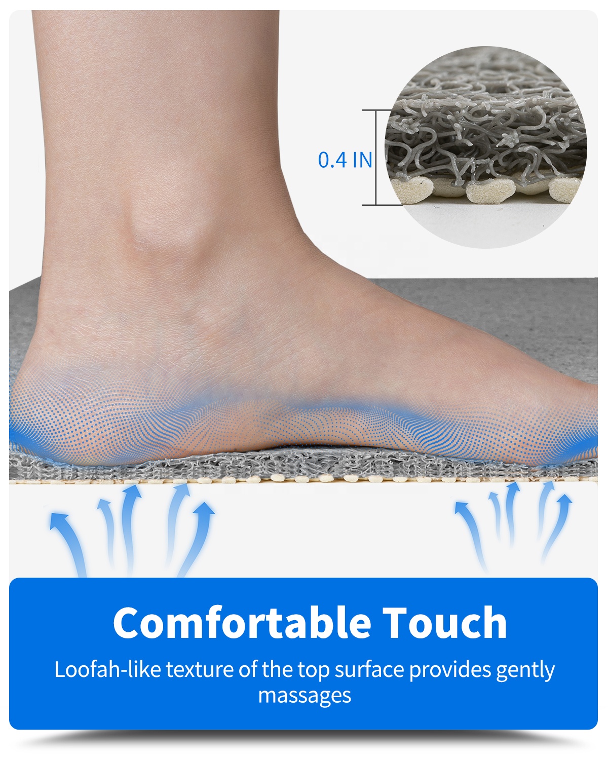 The Asvin Loofah Mat is unlike any other shower or bath mat, the plush woven design means it’s like having a deep-pile rug in your shower that adapts to the shape of your feet and feels wonderfully soft and cushioning as you step on it.